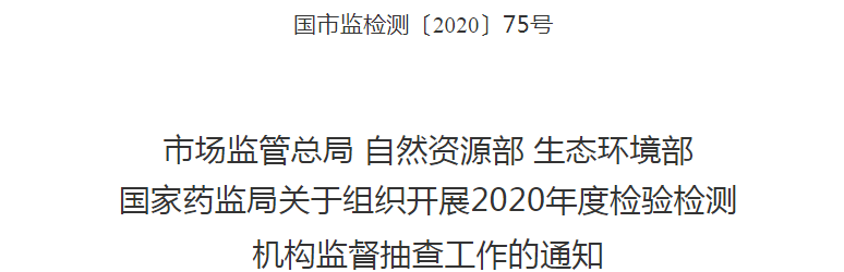 2020年度檢驗檢測機構監督抽查工作即將展開